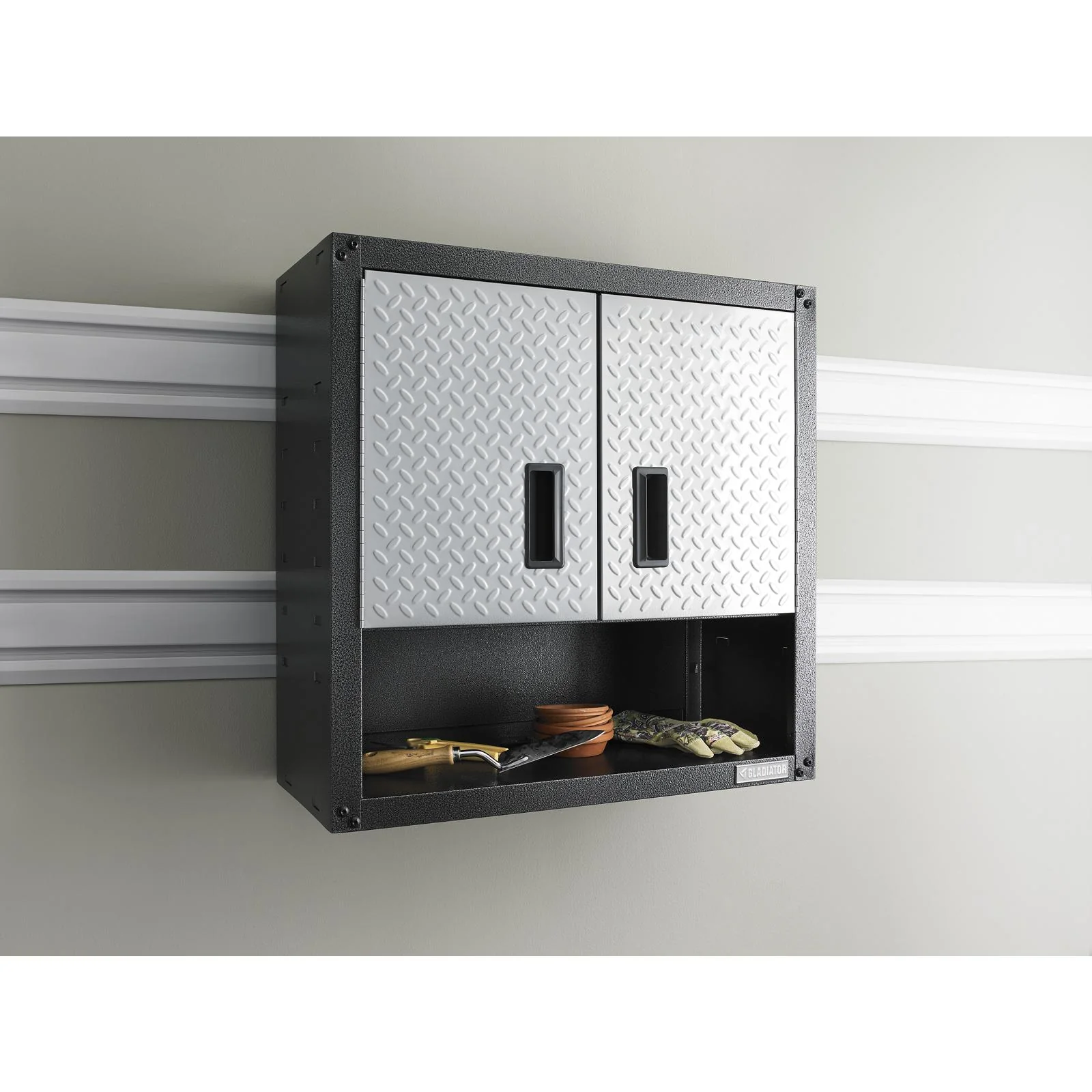 The Ready-to-Assemble 3/4-Door Wall GearBox features an open bottom shelf with power cord access to help homeowners easily connect radios or battery chargers to a power source. Gladiator® GearWall® Panels or GearTrack® Channels enable this storage cabinet to be easily mounted and repositioned to wherever you need it most. This unit is ideal for storing smaller automotive and gardening gear or paint supplies, keeping them out of the way but within reach. Plus, its design makes assembly quick and simple.